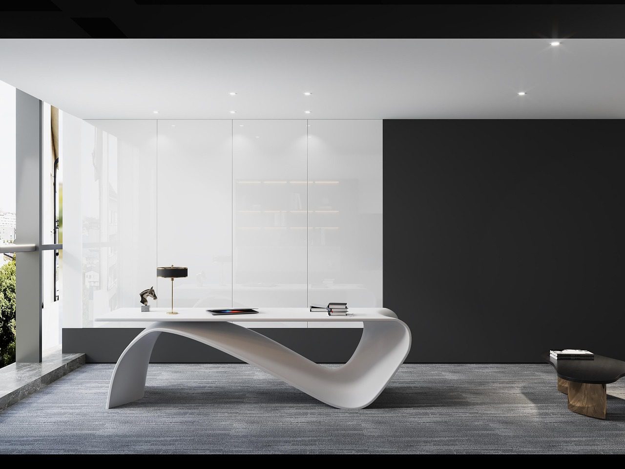 Modern executive desks are crafted from durable materials such as solid white wood or engineered MDF with high-quality finishes. Engineered surfaces treated with processes like baking paint create a smooth, scratch-resistant surface that is both easy to clean and long-lasting.